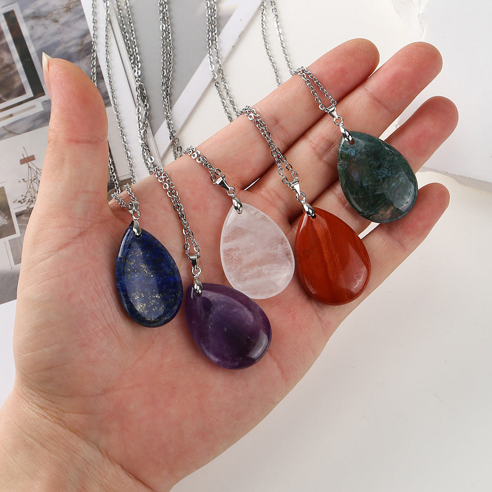25x 35 mm Naturstein Edelstein Anhänger inkl. Kette